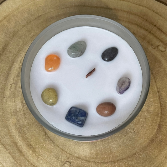 Bougie 7 Chakras avec 7 Pierres – Parfum Nag Champa – 70g / 256g