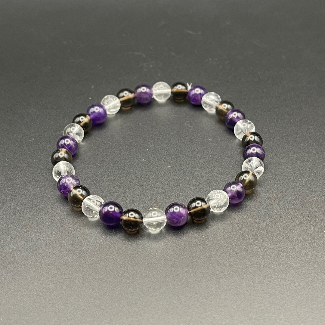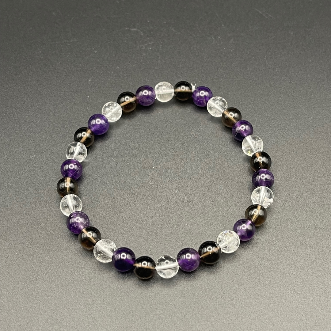 Bracelet fait main en améthyste, cristal de roche & quartz fumé